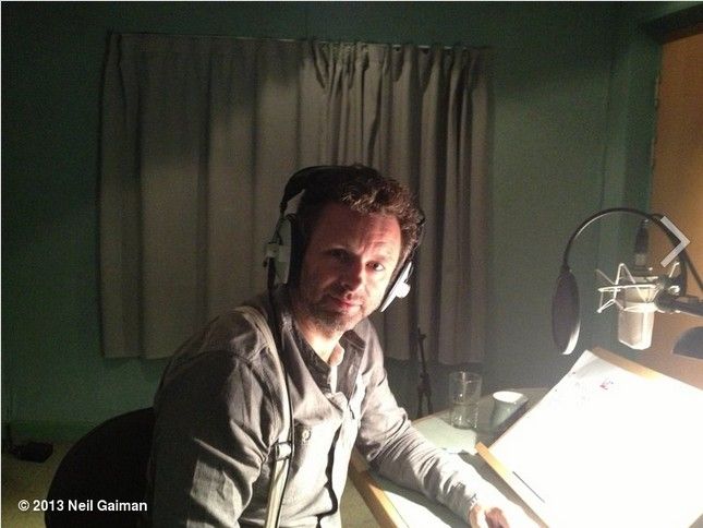 O famoso autor Neil Gaiman compartilhou ontem uma foto de Michael Sheen gravando uma versão em áudio de seu novo livro adulto, o romance