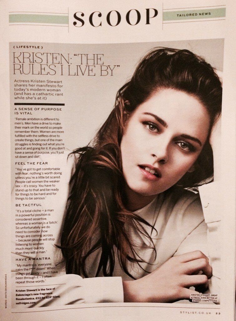 Kristen Stewart conversou rapidamente com a revista Stylist Magazine durante a divulgação do Rosabotanica. Confiram: